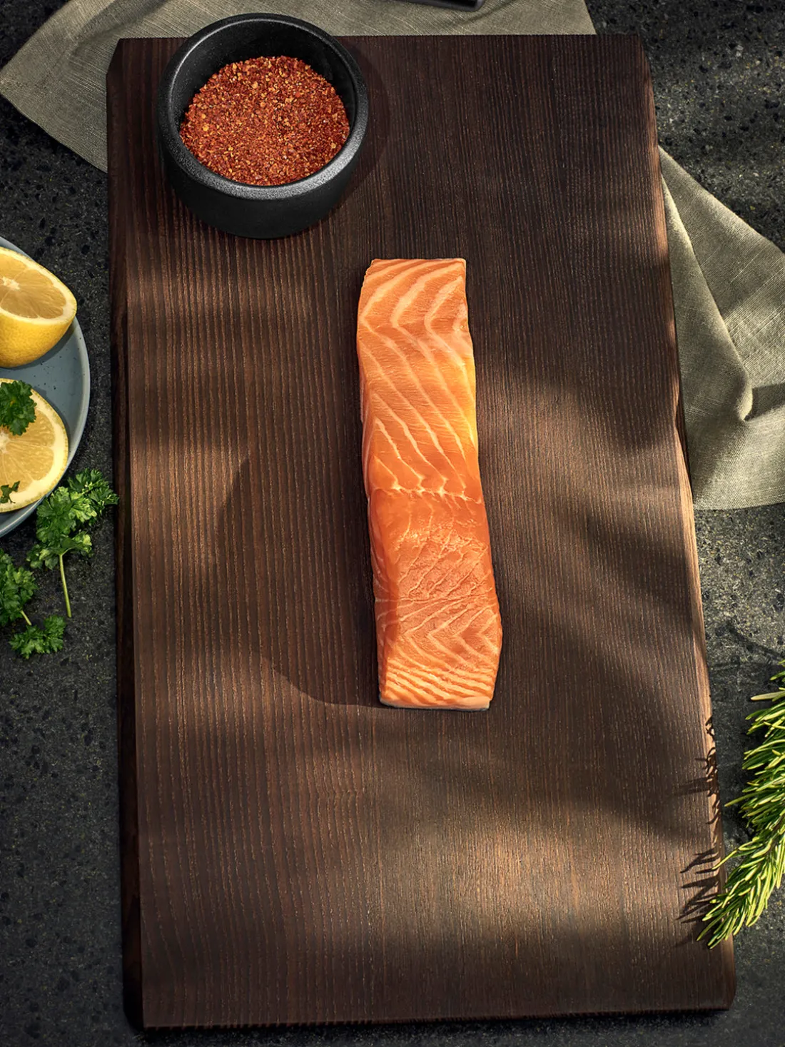 La serie Rå también incluye un cuenco para especias, un tarro para sal grande, un molino y una tabla de cortar.
