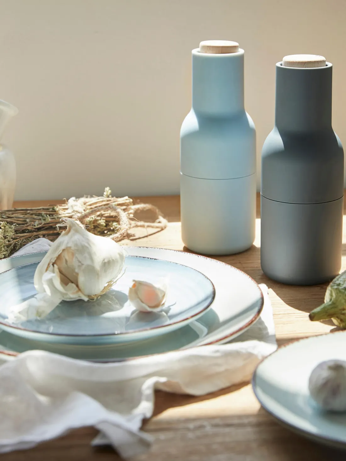 BOTTLE GRINDER es un juego de dos piezas, un salero y un pimentero, cada uno equipado con un potente molinillo de cerámica que muele sin esfuerzo una gran variedad de especias. El juego tiene forma de botella que se adapta cómodamente a la mano y se presenta en una gama de materiales y colores duraderos. El diseño vertical es fácil de usar, rellenar y limpiar, y garantiza que las superficies queden libres de residuos no deseados mientras los alimentos se sazonan a la perfección.
