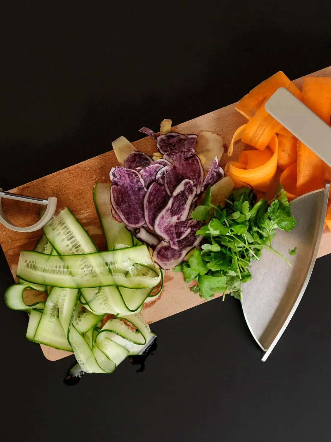 La eficiencia es el objetivo cuando sacas este pelador de verduras del cajón de la cocina. La pequeña herramienta es una amiga invaluable cuando necesitas pelar algo rápidamente, sin importar qué mano estés usando o en qué dirección estés pelando, hacia el cuerpo o alejándote de él. La hoja está hecha de acero de calidad afilado y la empuñadura se adapta bien a la mano.