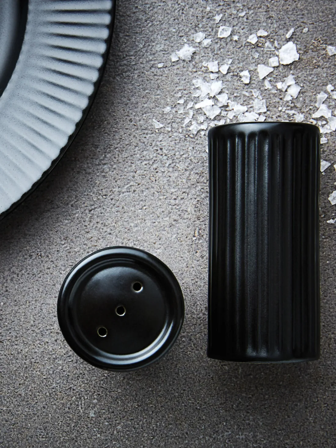 Salero y pimentero con superficie texturizada