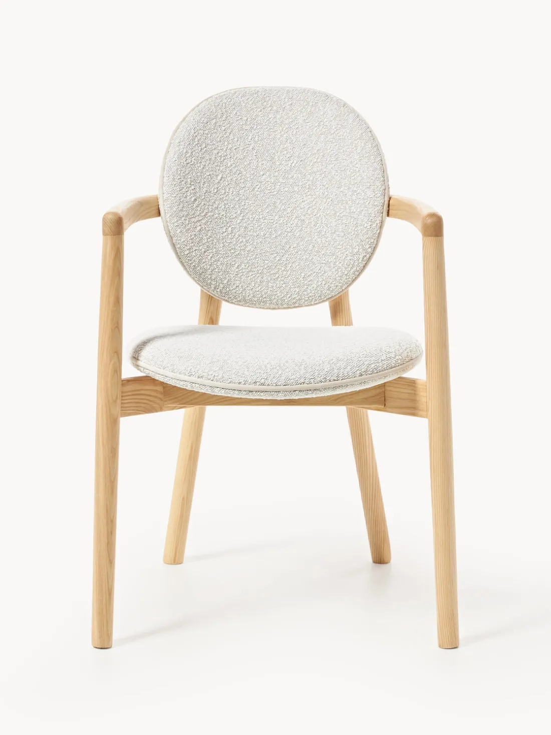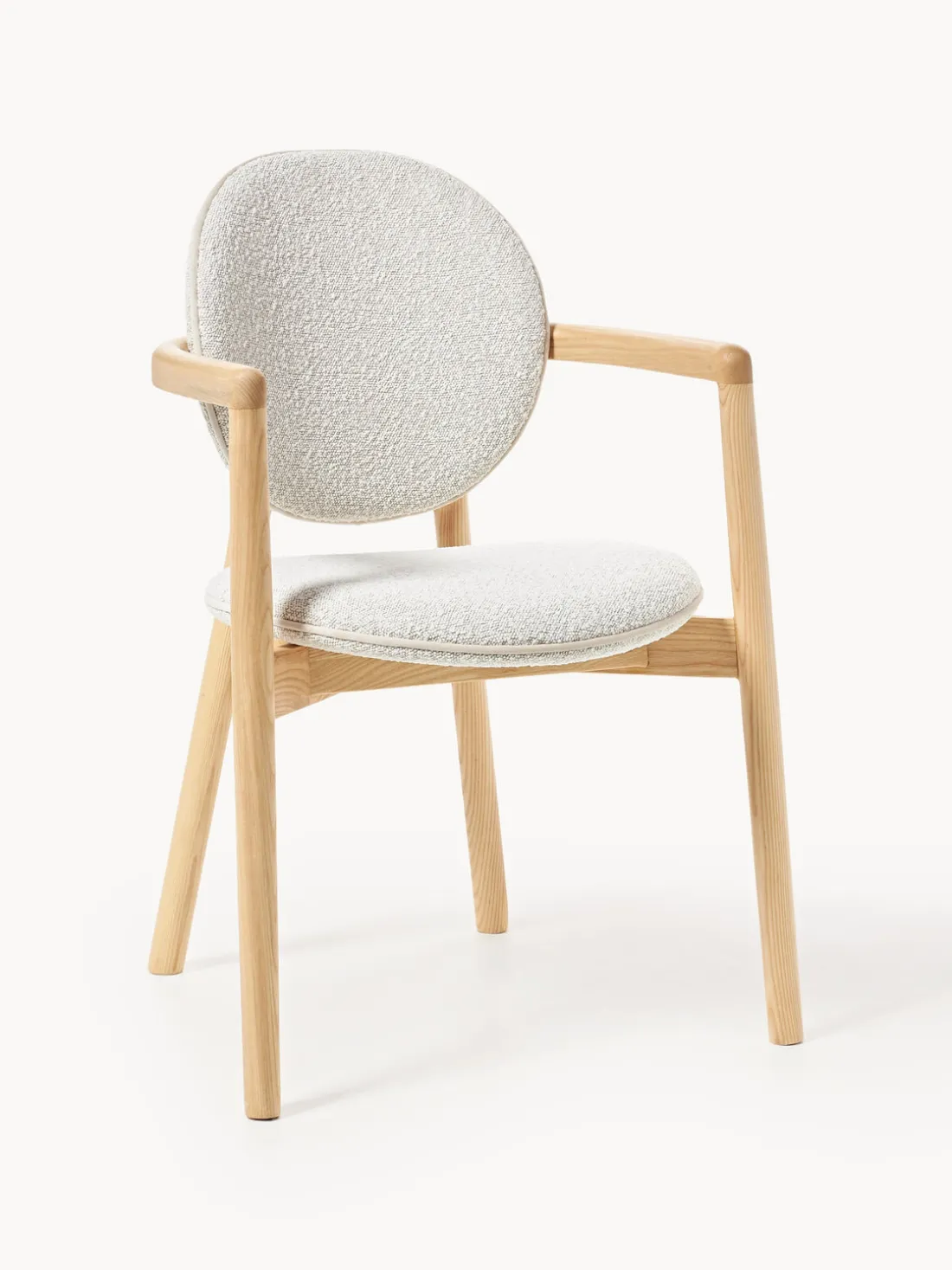 | Color | Bouclé blanco, madera de fresno clara |