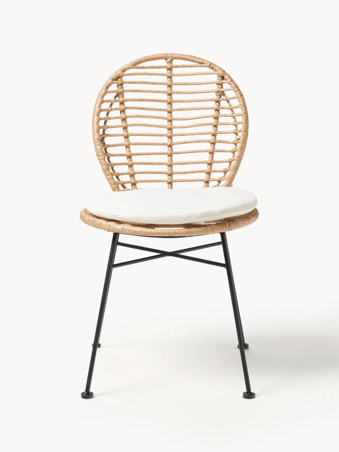 Gracias al resistente tejido de ratán polivinílico, esta exclusiva gama de la Westwing Collection puede utilizarse tanto en exteriores como en interiores. Ya sea en el salón, el comedor, el porche o la terraza, las sillas de ratán Cordula son ideales para pasar largas tardes al aire libre o en el interior.