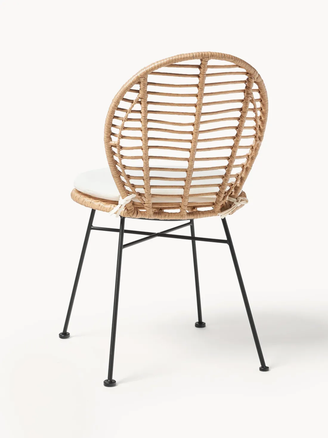 Podrás elegir entre varios colores: ratán de las sillas en un cálido color marrón claro con armazón en negro mate, que aporta un moderno contraste, o bien puedes optar por la versión totalmente negra, para un look sofisticado. Los cojines que vienen incluidos proporcionan un confort adicional y hacen que sentarse sea aún más agradable.