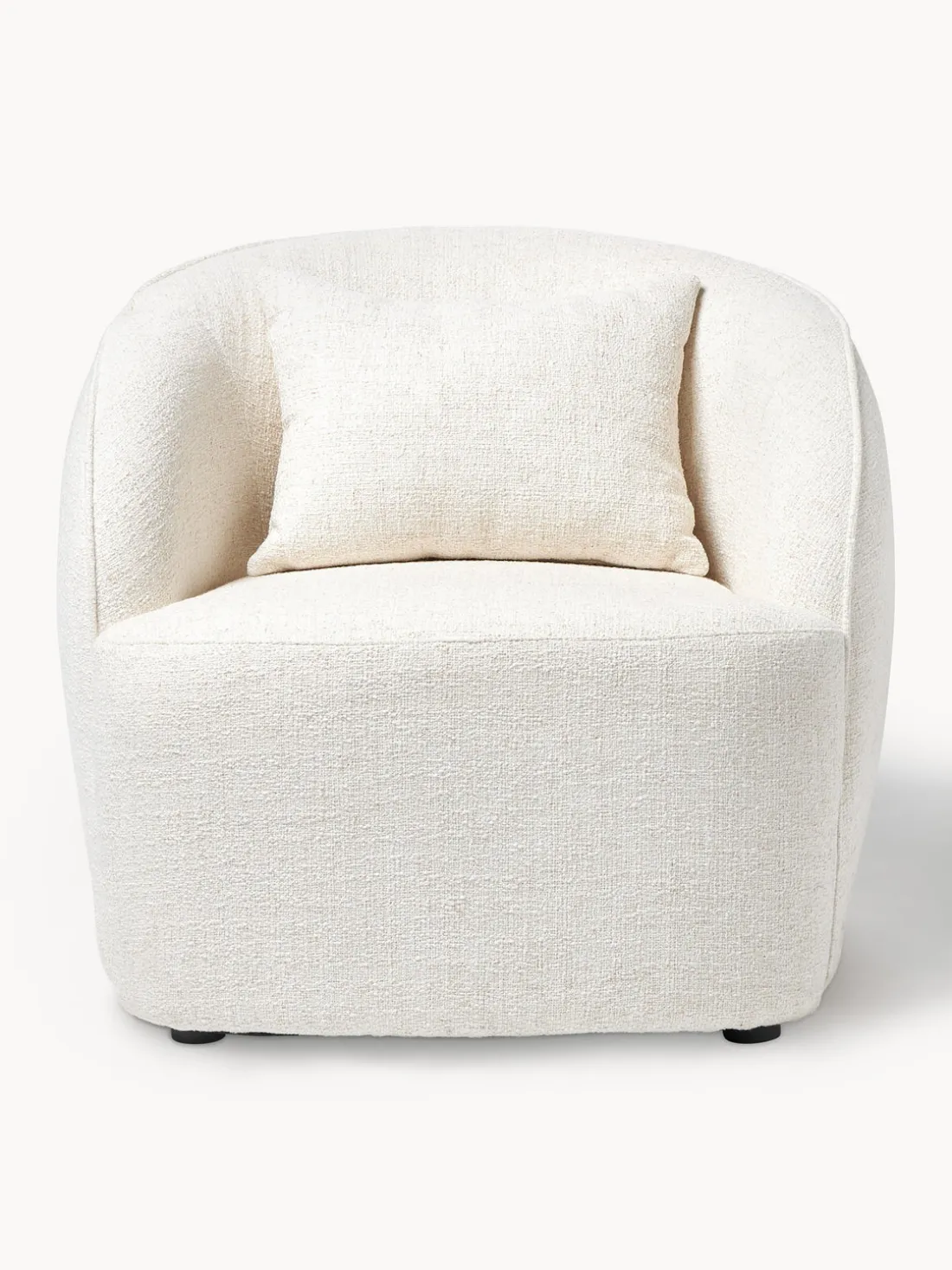 Con su color beige claro, el sillón de cóctel Elodie en tejido bouclé se adapta perfectamente a cualquier tipo de decoración y crea un ambiente cálido.