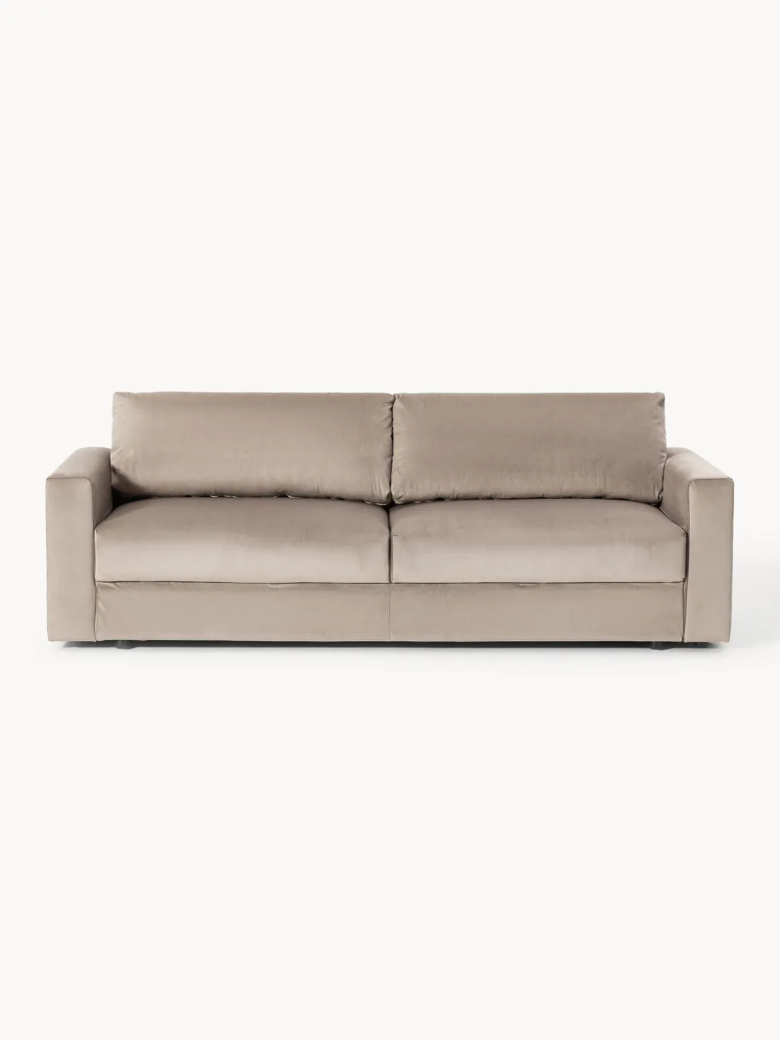 Sofá cama con dos cojines de respaldo extraíbles.