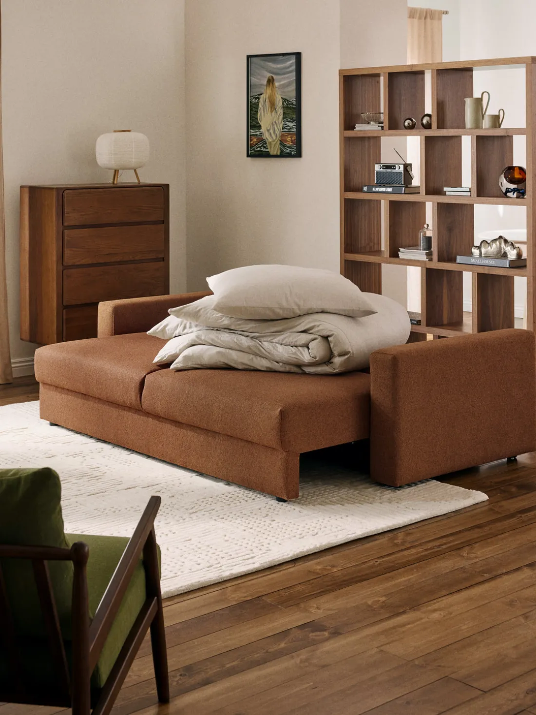 Sofá cama en tejido bouclé Tasha (3 plazas), con espacio de almacenamiento