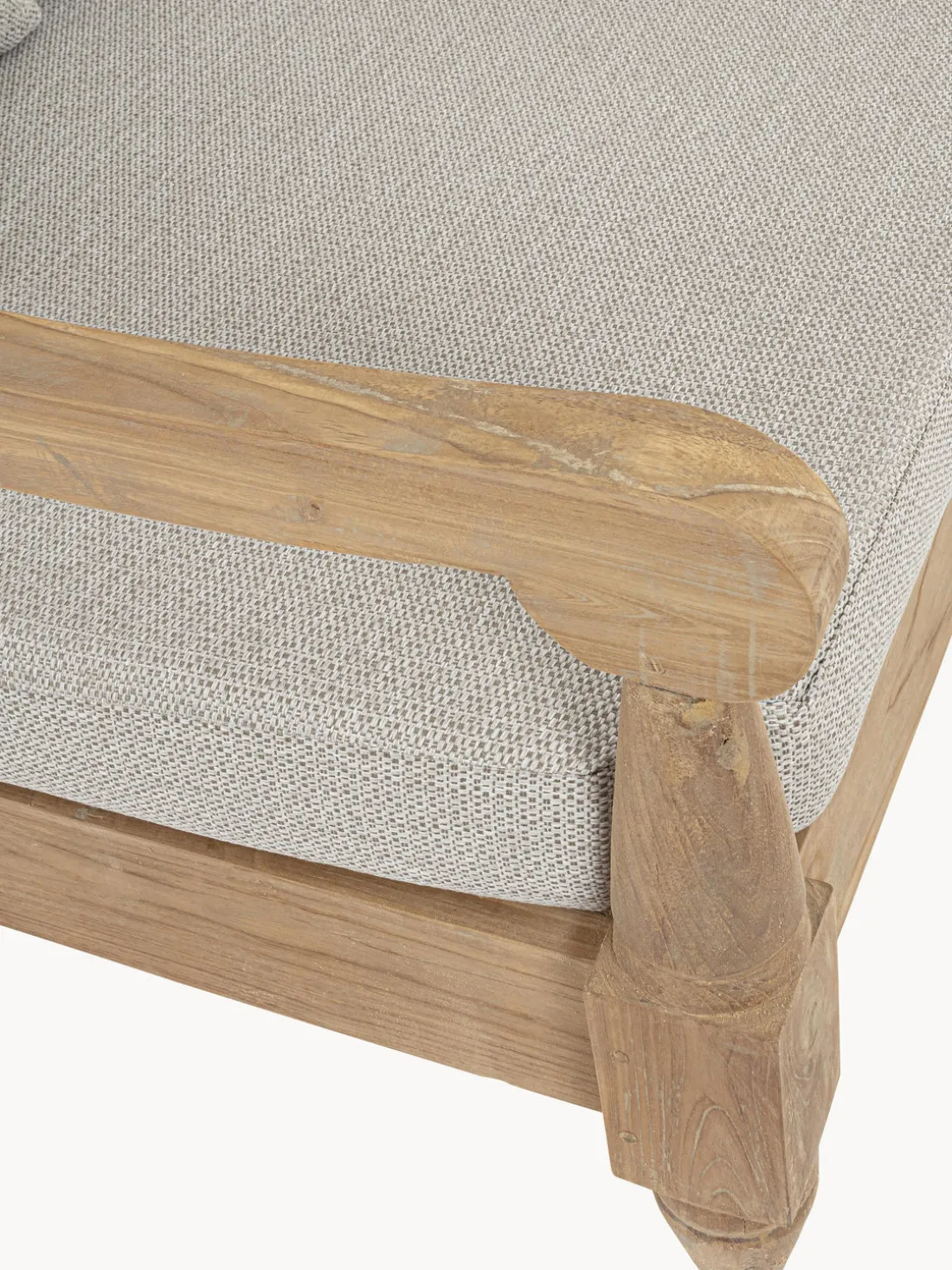 Si los muebles de madera de teca no se tratan, una película delgada de color gris plateado se puede formar con el tiempo en la superficie. Se recomienda frotar la madera con un estropajo áspero y agua tibia, al menos una vez al año. Si deseas mantener el color original de la madera de teca, se recomienda el uso de aceite de teca adecuado.