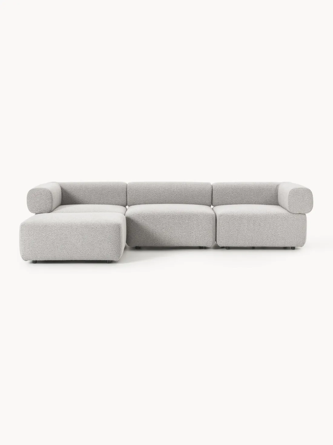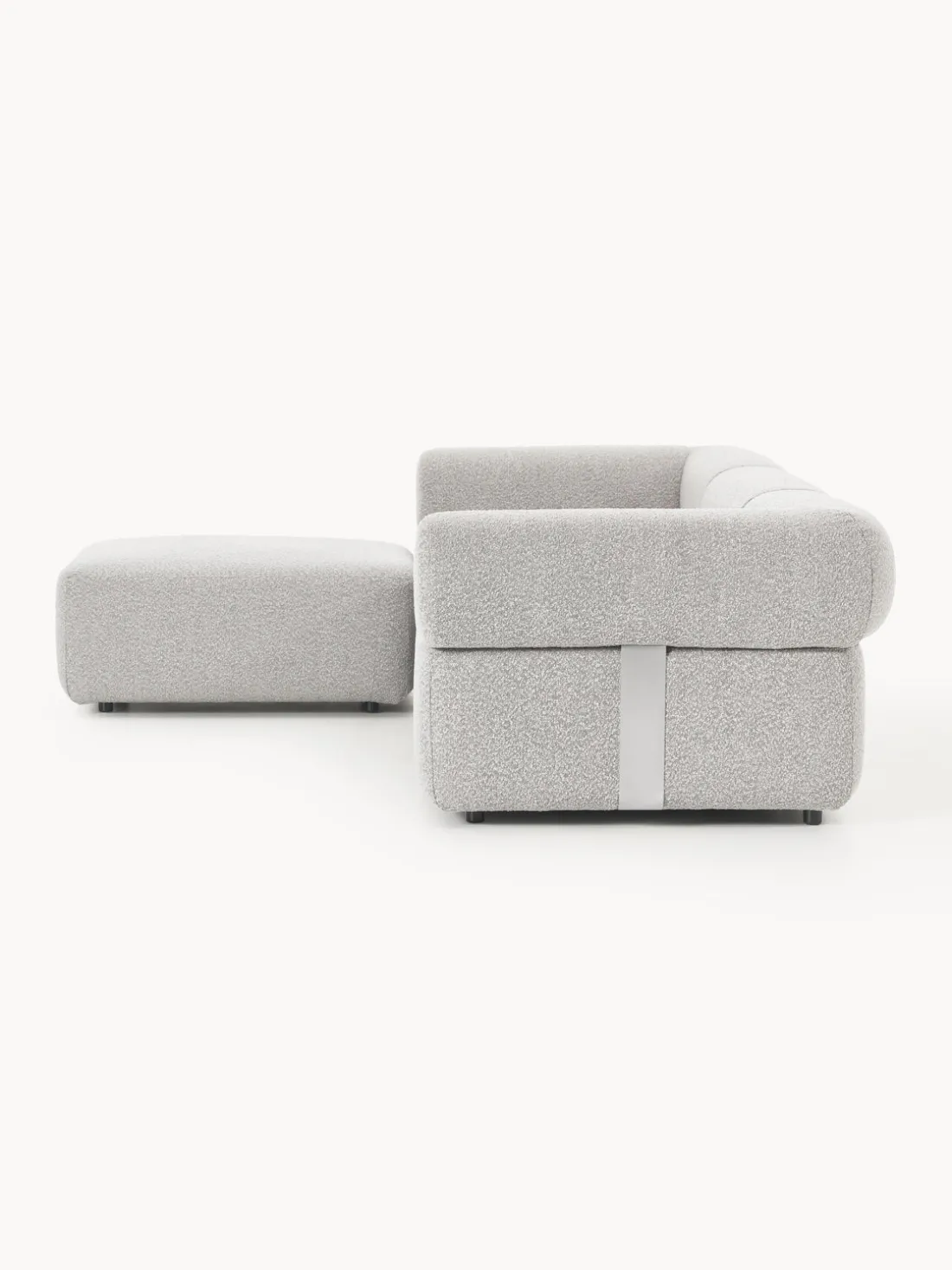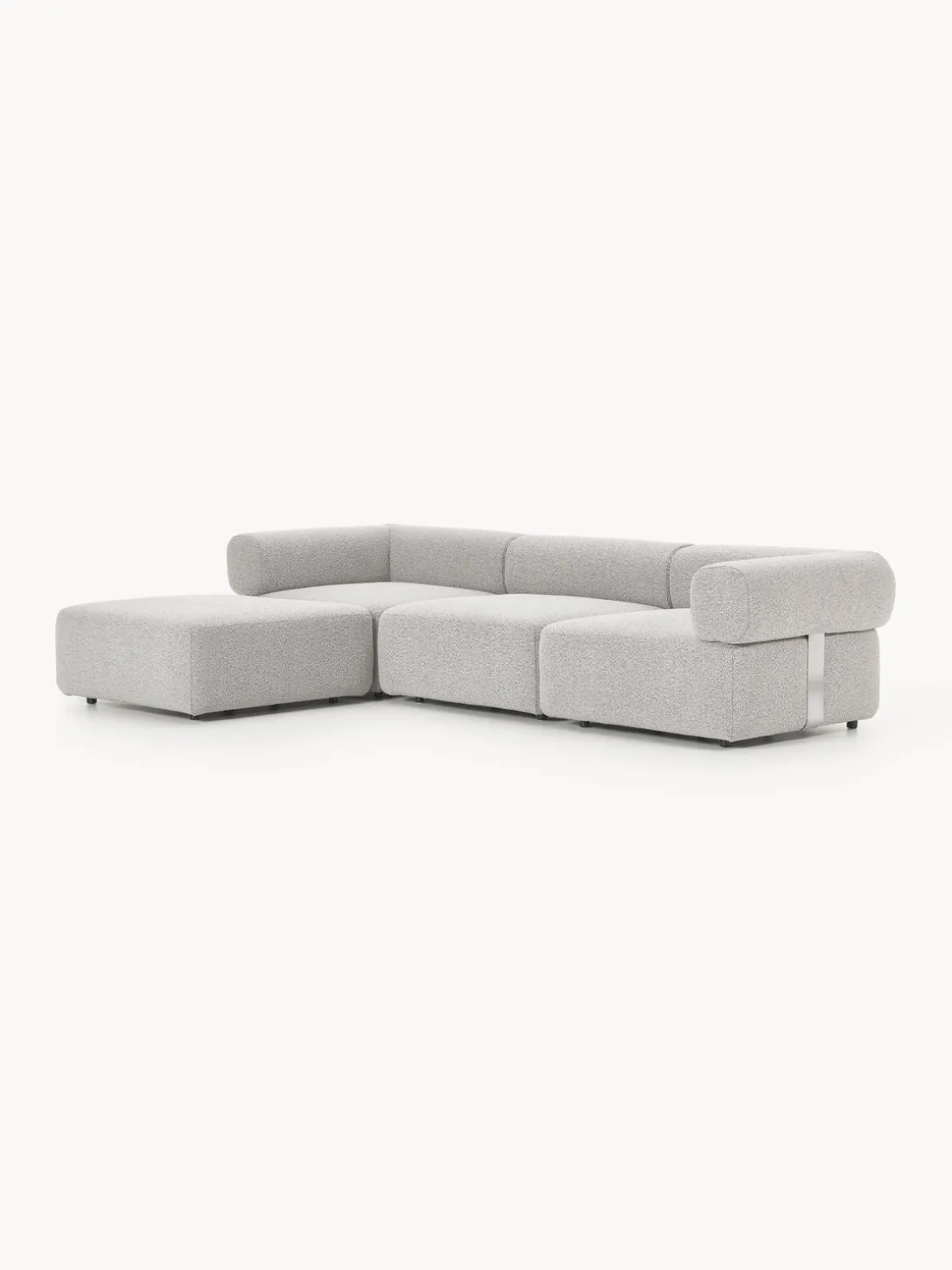 Los cuatro módulos pueden combinarse de diversas formas. El sofá se entrega en cuatro partes que pueden conectarse individualmente mediante cierres situados en la parte inferior de los módulos.