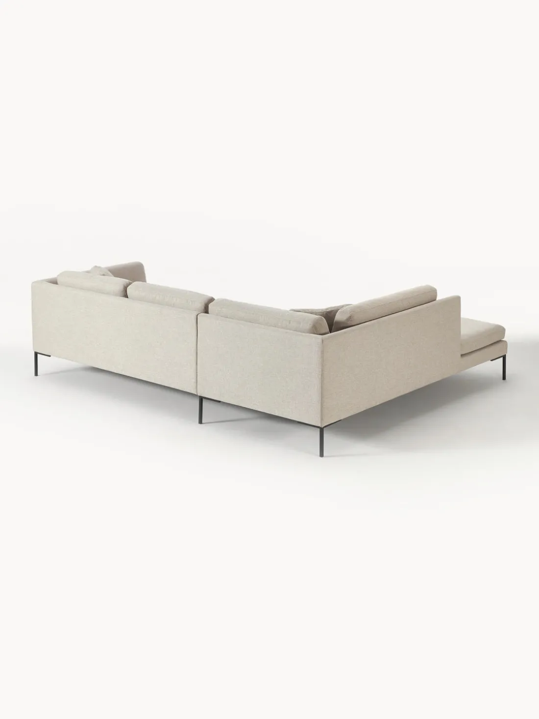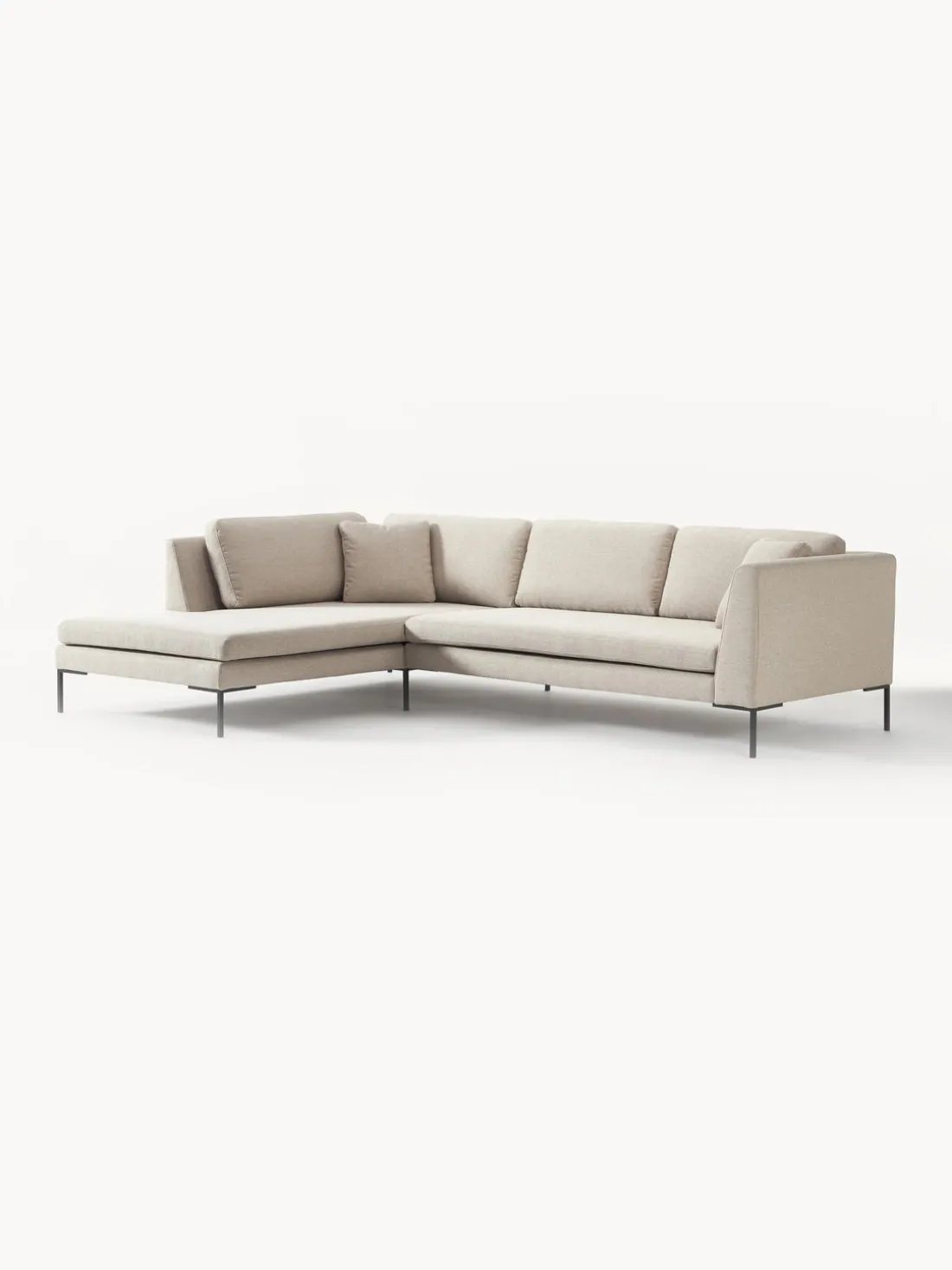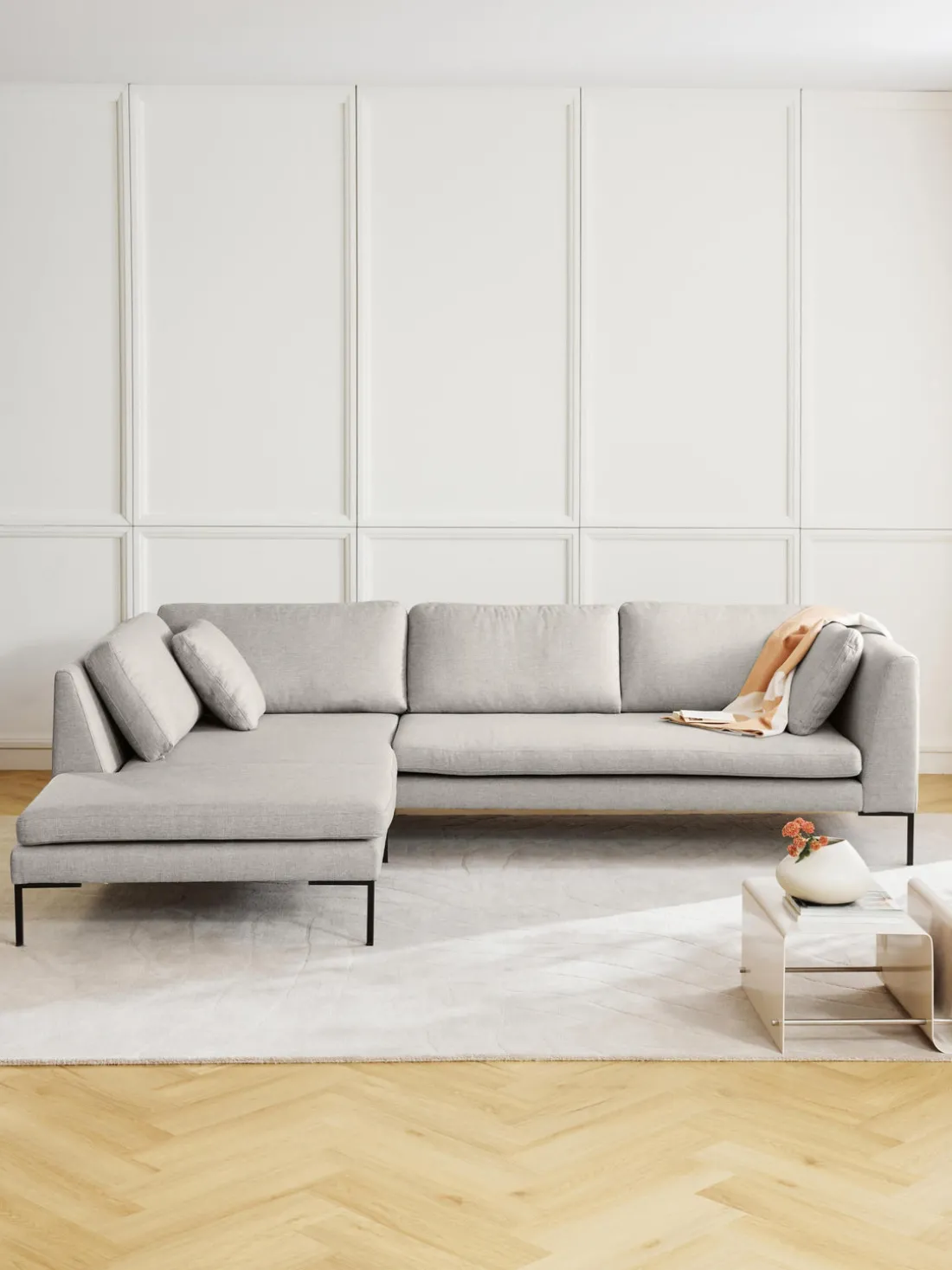 La chaise longue está en el lado izquierdo cuando estás frente al sofá.