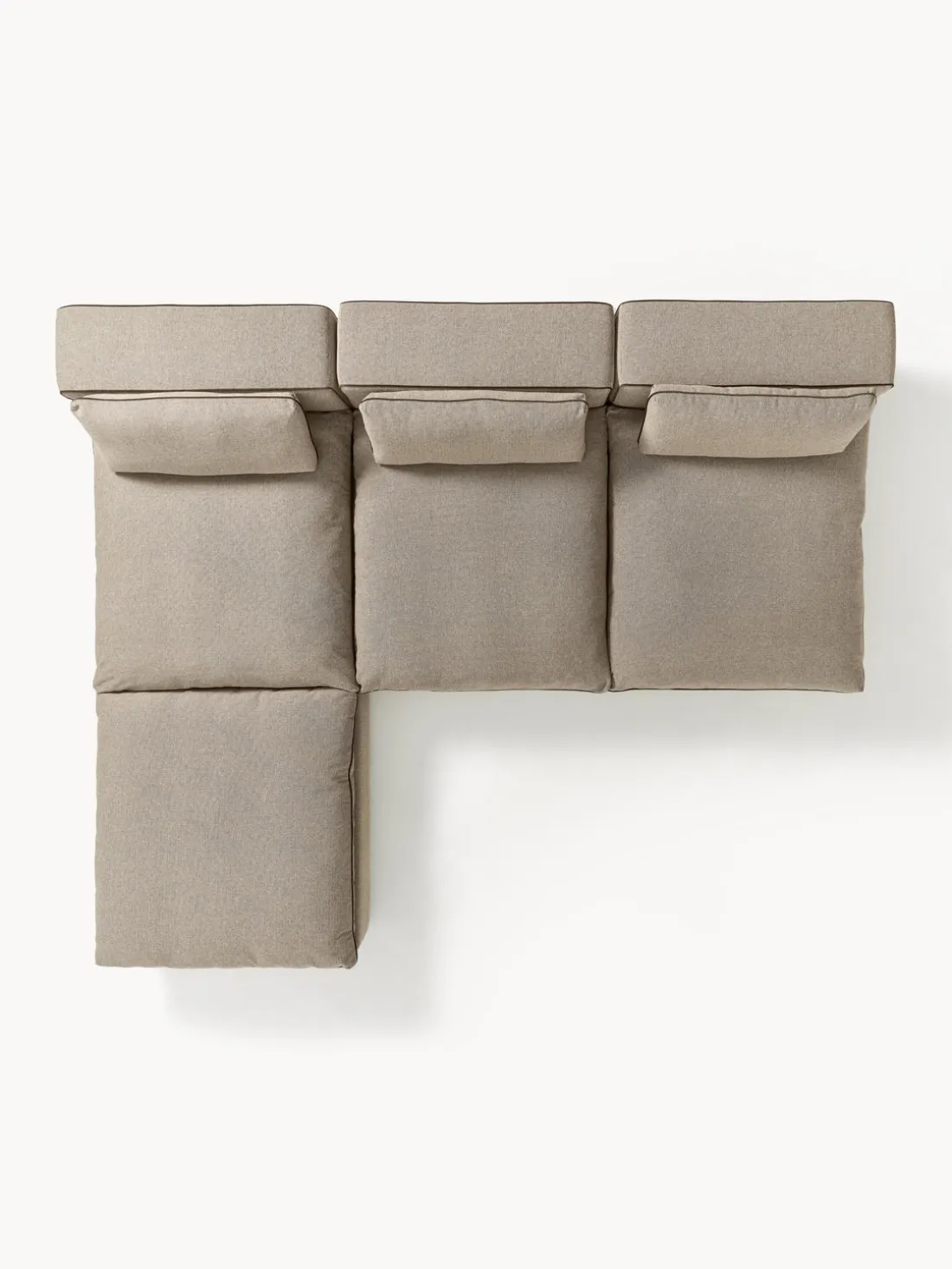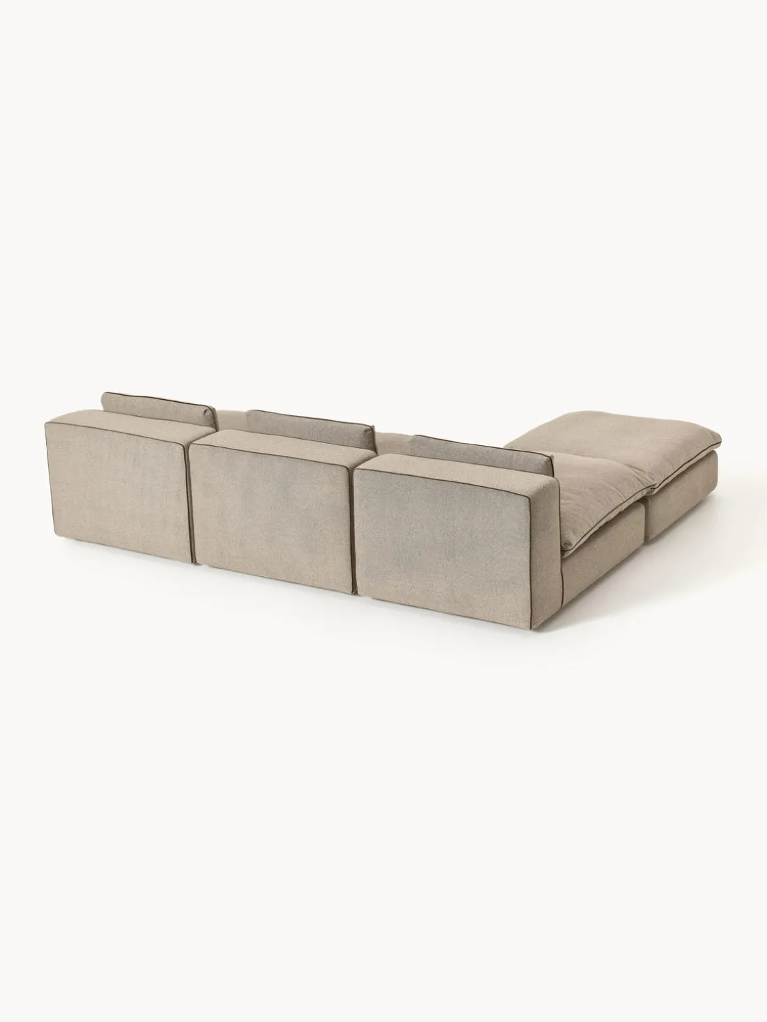Nuestro sofá modular Felix consta de tres módulos y un reposapiés que pueden combinarse individualmente.