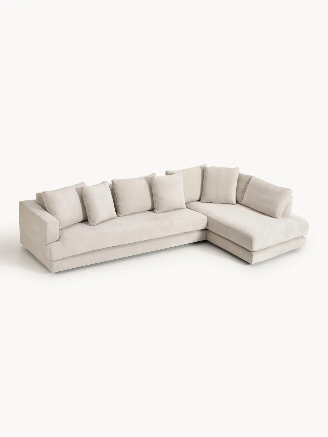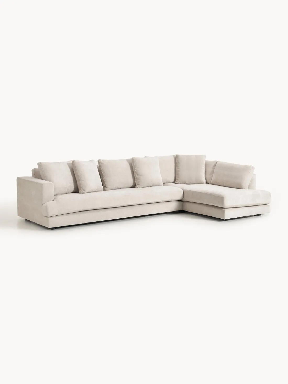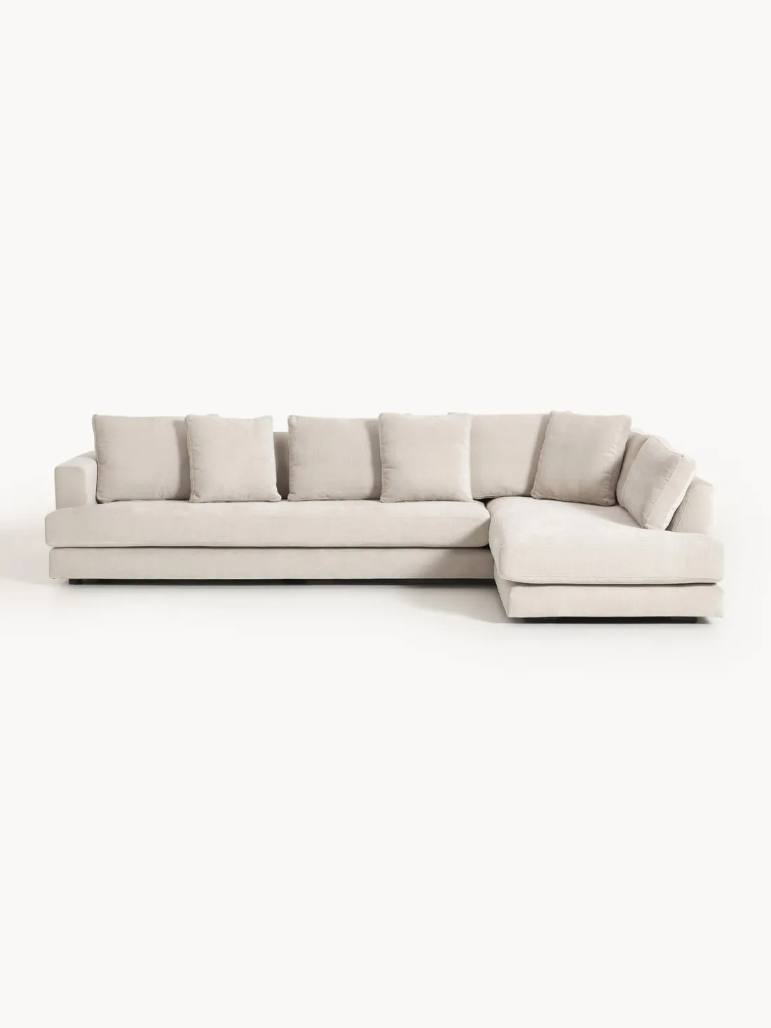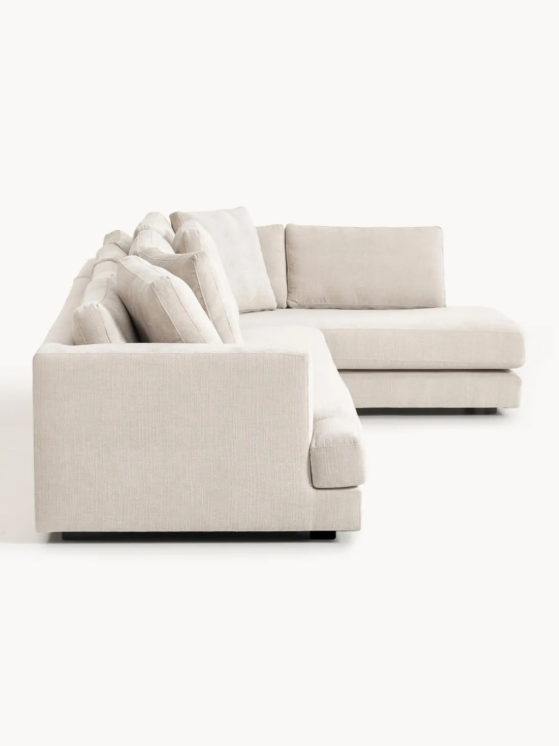 La chaise longue está en el lado derecho cuando estás frente al sofá.