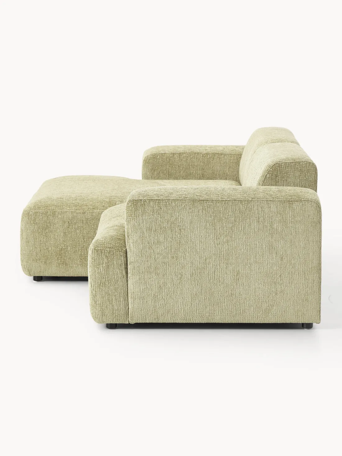 La chaise longue está en el lado izquierdo cuando estás frente al sofá.