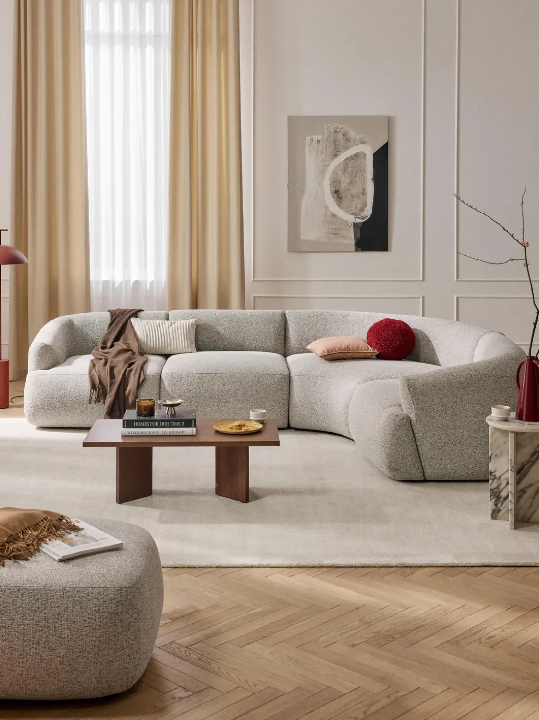 Los 4 módulos pueden combinarse para crear formas diferentes. El sofá se entrega en 4 partes que pueden montarse individualmente mediante cierres situados en la parte inferior de los módulos.