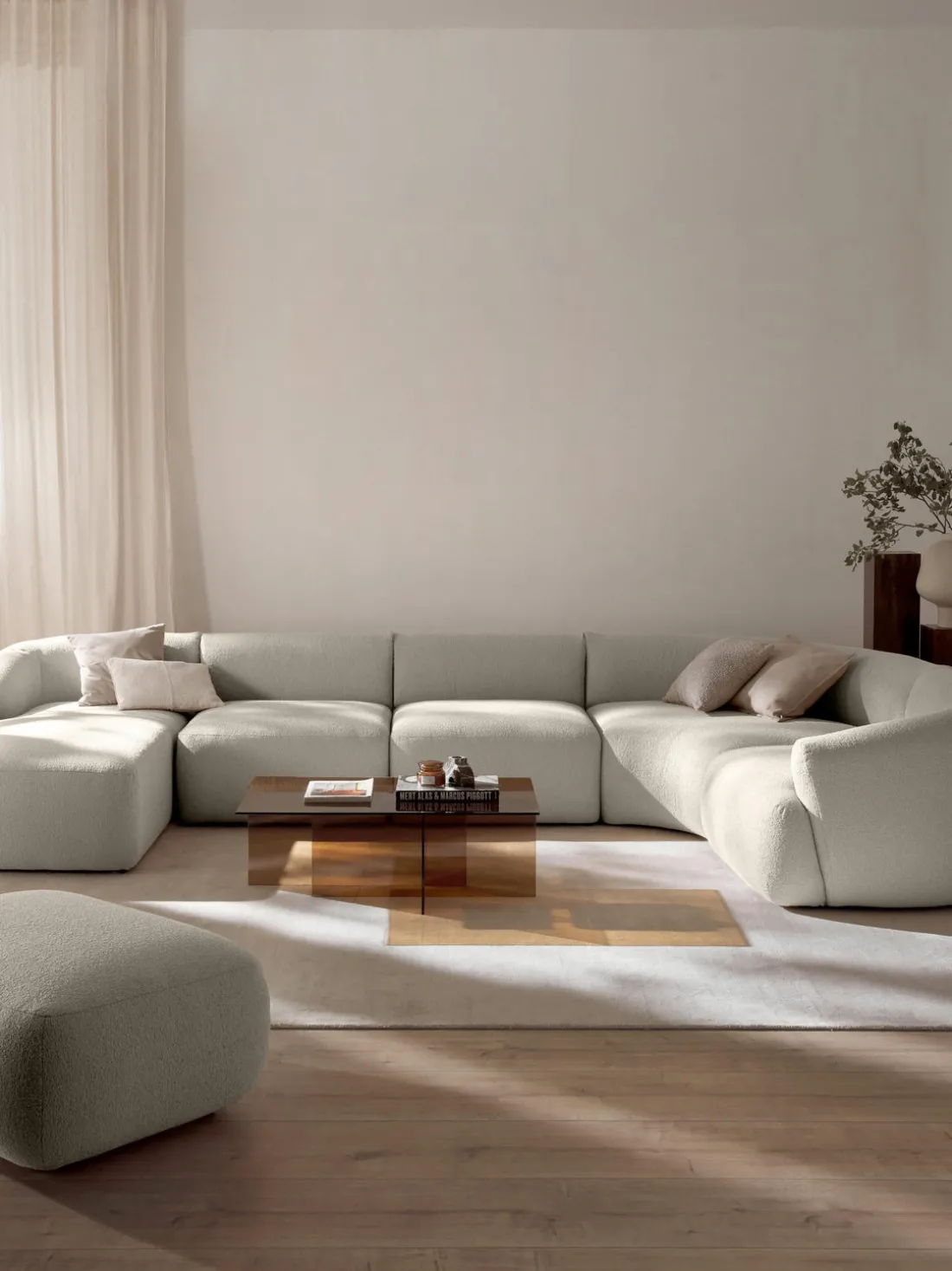 Los 5 módulos se pueden combinar a tu gusto para crear tu sofá. Se entrega en cuatro partes, que se pueden juntar individualmente mediante enganches en la parte inferior de los módulos.