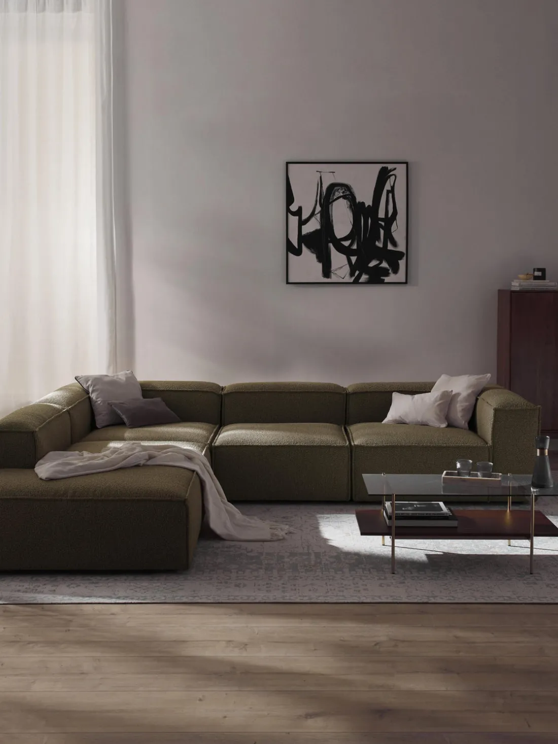 Sofá rinconera modular grande en tejido bouclé Lennon