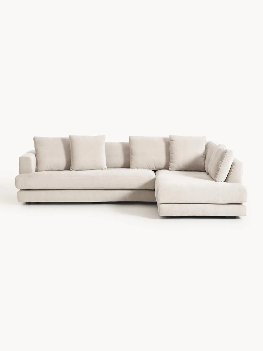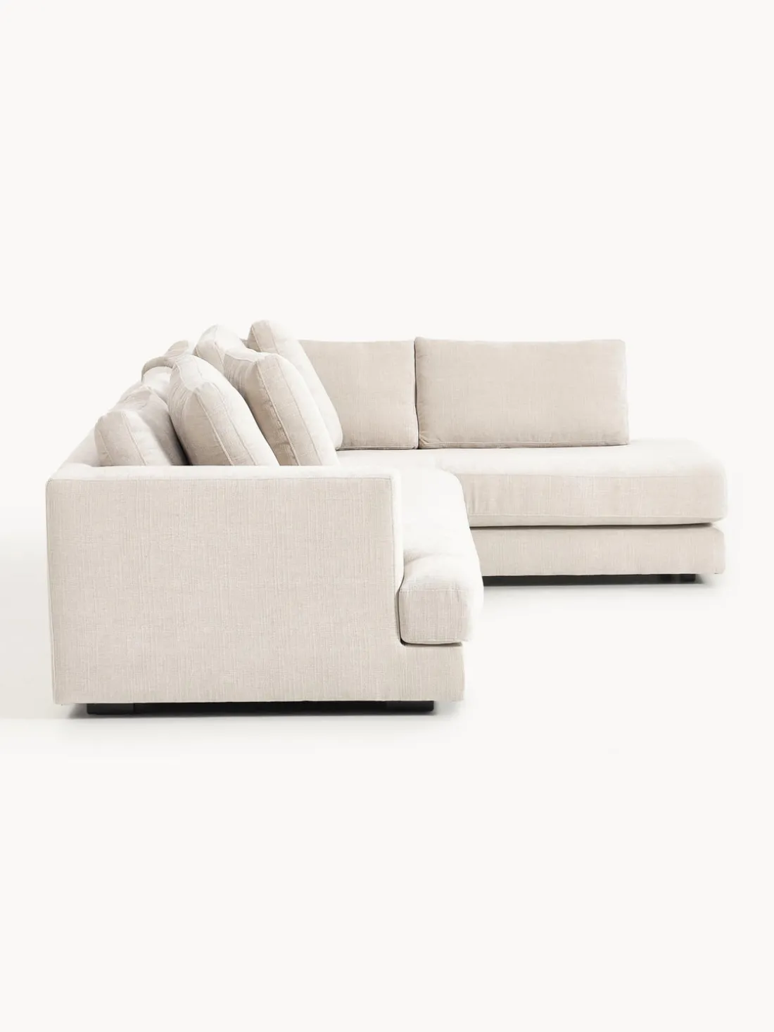 La chaise longue está en el lado derecho cuando estás frente al sofá.