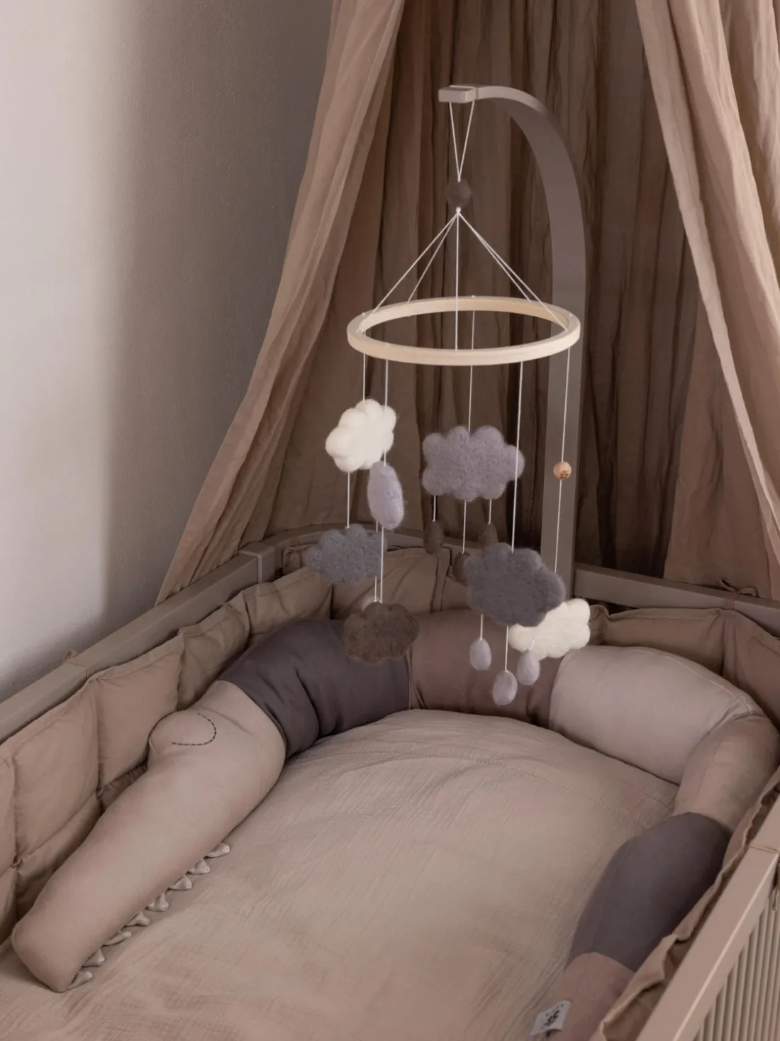Un práctico soporte de madera para móviles que se puede fijar fácilmente entre los barrotes de la cama Sebra, Baby & Jr. u otra cuna, moisés, cambiador o parque con barrotes. Cuelga un móvil de ganchillo en el soporte y crea un ambiente acogedor para tu bebé. El soporte se fija a la cama atornillando los dos discos acolchados con la parte giratoria. Los discos acolchados también protegen la tela a la que se fijan.