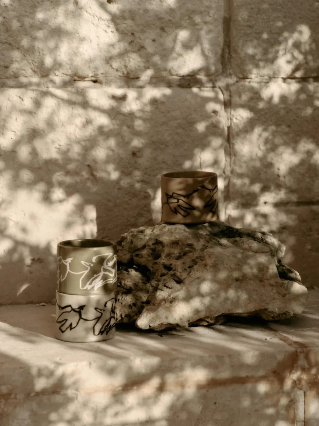La taza VUELO reproduce los elegantes bocetos de pájaros que Utzon realizó durante su estancia en Can Lis. La taza captura la fluidez y la gracia de su motivo de pájaro. Hecho en loza esmaltada, cada pieza lleva marcas distintivas hechas a mano que le confieren una calidad artesanal única. El motivo del pájaro se ha realizado mediante una técnica tradicional de batik en la que la cera resiste al esmalte, lo que da lugar a intrincados dibujos que acentúan el carácter artesanal de la taza.