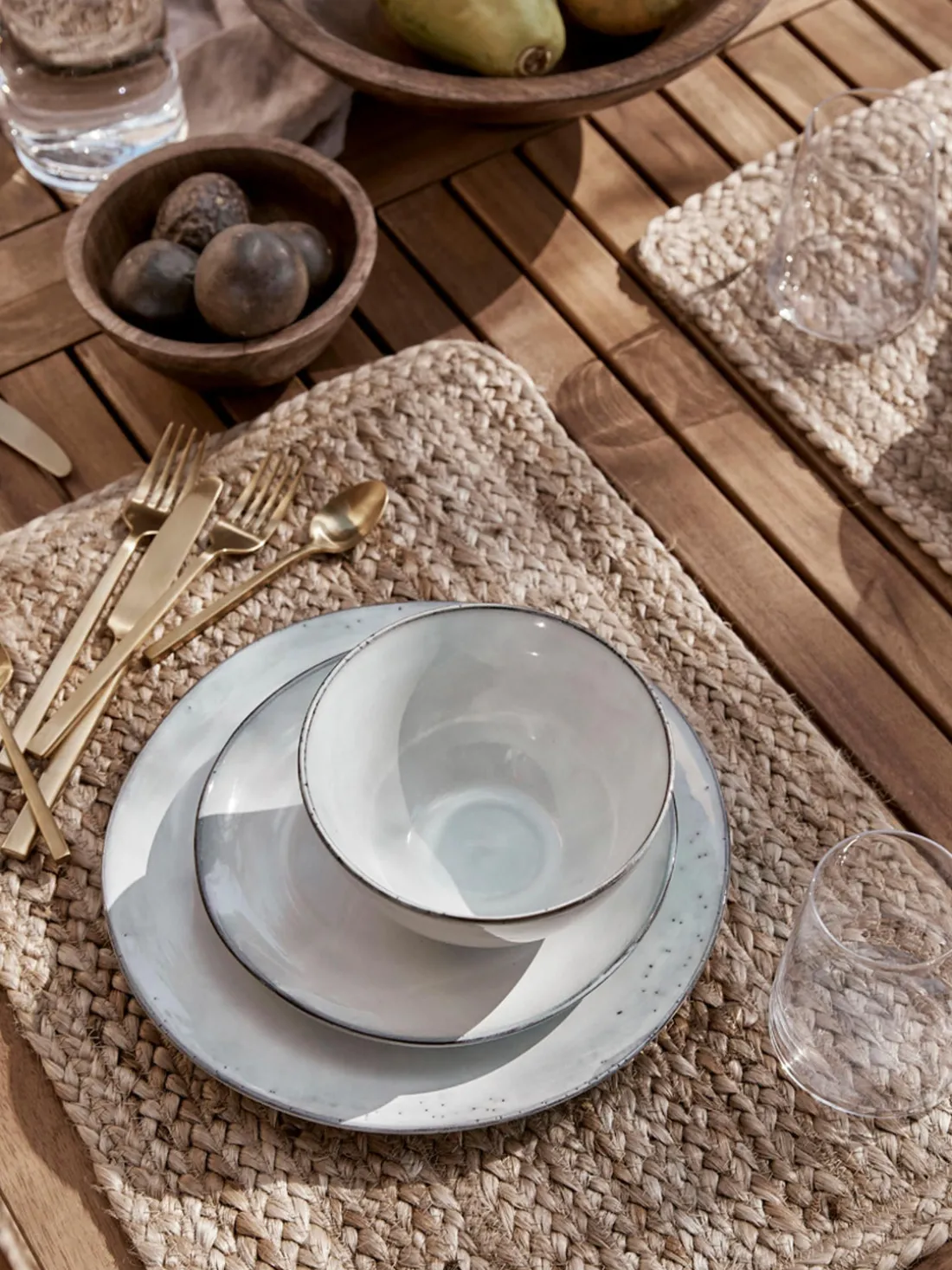 Vajilla hecha artesanalmente que consta de cuatro platos llanos, cuatro platos postre y cuatro cuencos.