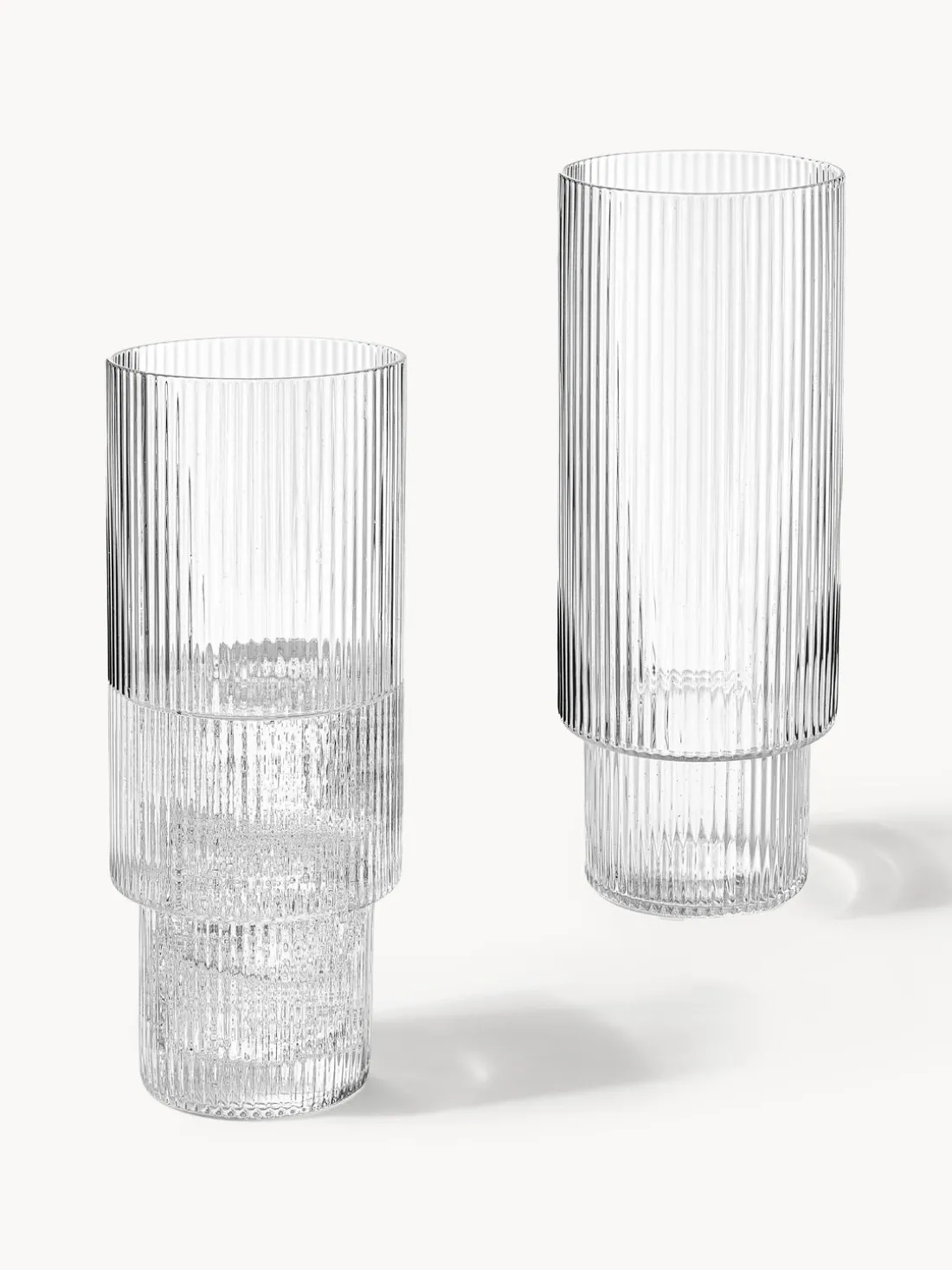 Puedes servir tu bebida favorita con estilo en estos vasos y observar cómo aparece un deslumbrante juego de luces y texturas en las ondulaciones de los vasos.