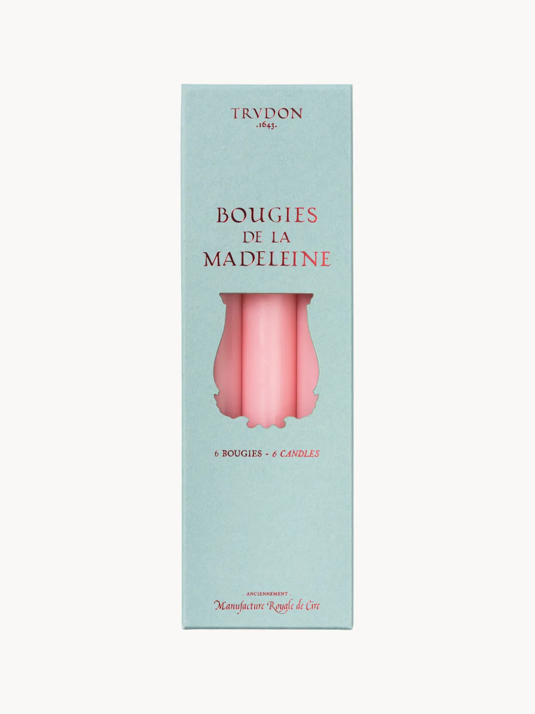 Estas velas, llamadas MADELEINE, se utilizaron para iluminar la iglesia de la Madeleine en París. Se fabrican en el taller de Normandía según métodos tradicionales. Las velas MADELEINE están hechas de cera de alta calidad y se tiñen en pequeñas cantidades. Son inodoras y no gotean.