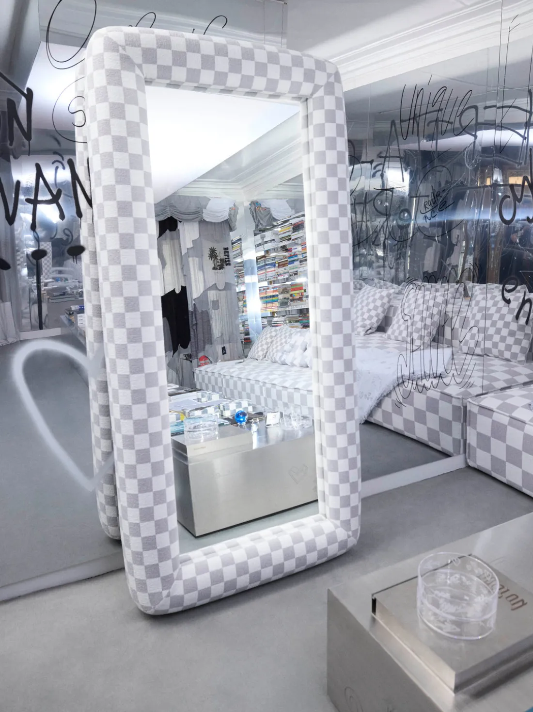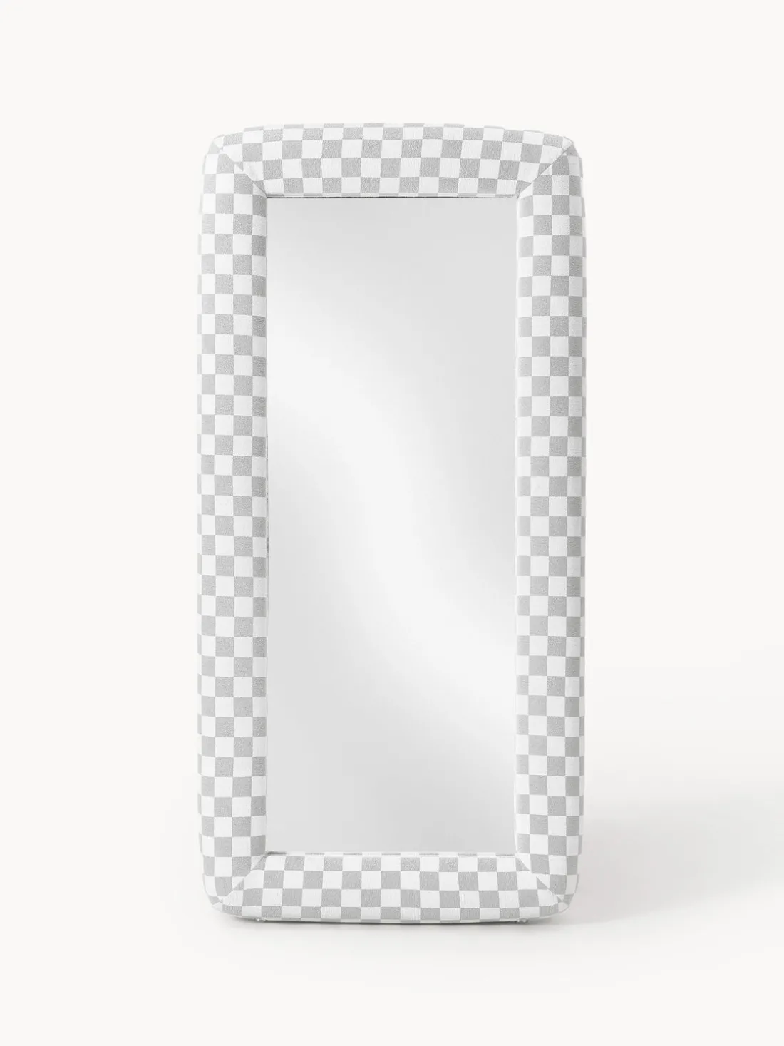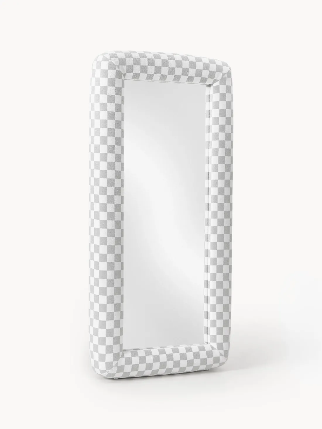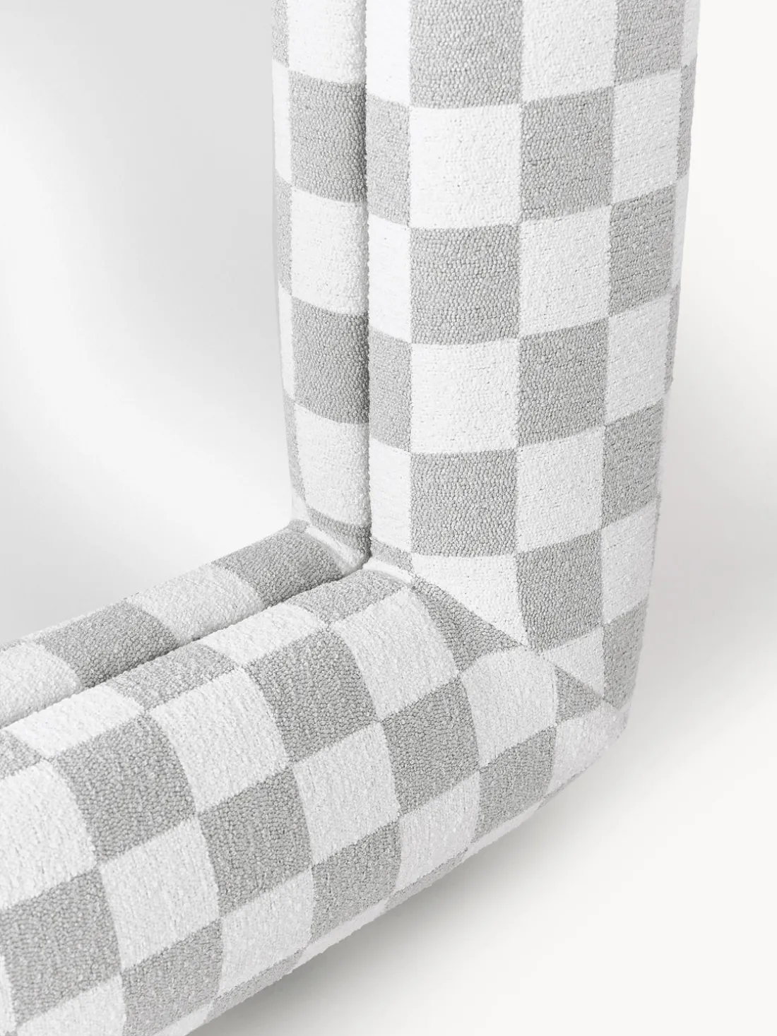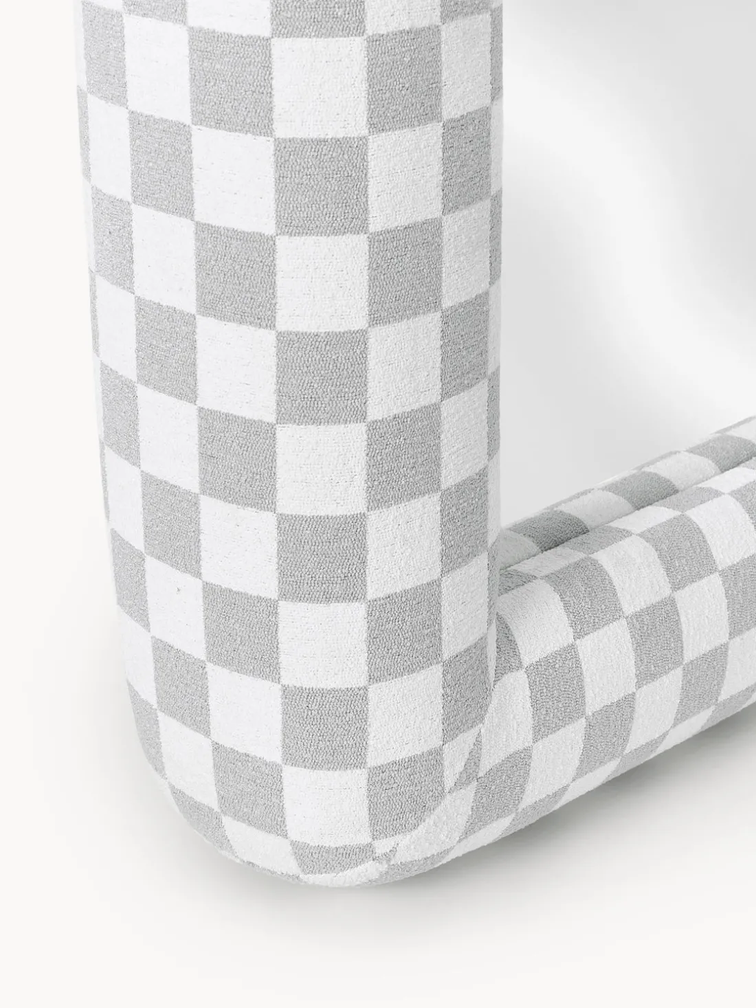 Con un giro escultórico en el reflejo cotidiano, el espejo GLACE lleva el lenguaje visual característico de los estudios Crosby a una forma inesperada y voluminosa. Enmarcado en bouclé táctil con un atrevido patrón de tablero de ajedrez gris, esta pieza de cuerpo entero y de pie convierte un objeto funcional en una declaración de diseño. El borde grueso acolchado añade suavidad y dimensión, jugando con la escala de una manera que se siente divertida pero sofisticada. El motivo de tablero de ajedrez, inspirado en una cuadrícula de Photoshop, un lienzo digital en blanco donde comienza la creatividad, enmarca no sólo su reflejo, sino un momento de intención artística. GLACE no es sólo un espejo; es una invitación a verse a sí mismo a través del prisma del diseño.