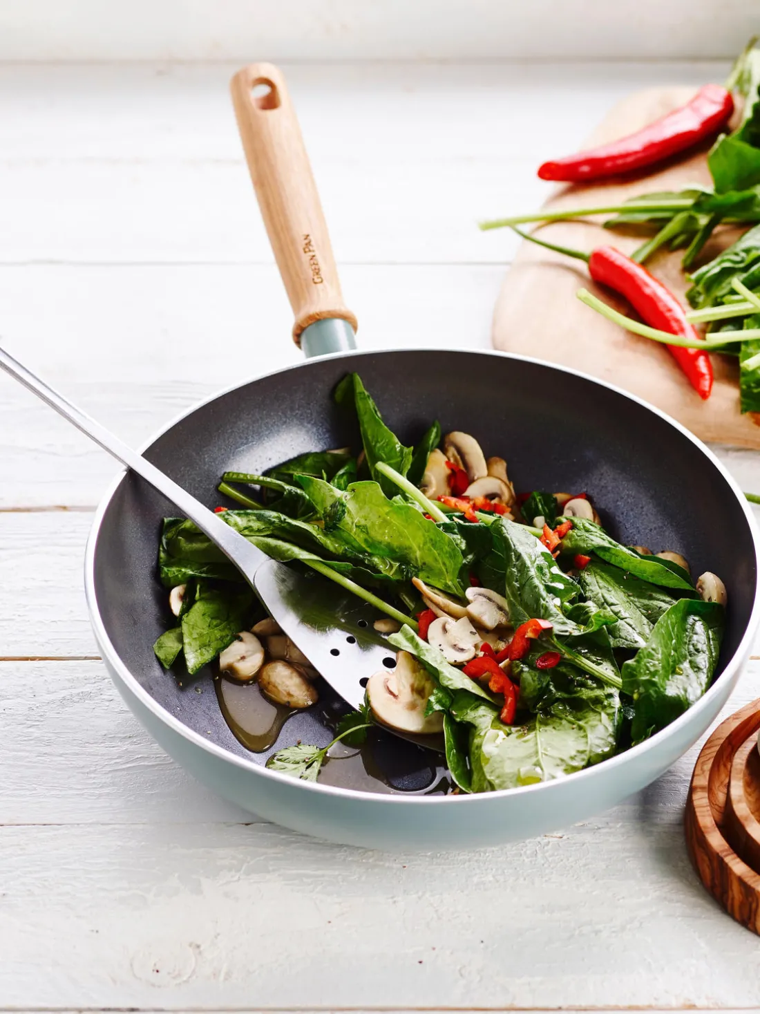 El wok tiene un revestimiento antiadherente (7ª generación) con tecnología ScratchGuard. Esto facilita el manejo y la limpieza. El wok con tapa de cristal es apto para todo tipo de cocinas incluida la de inducción.